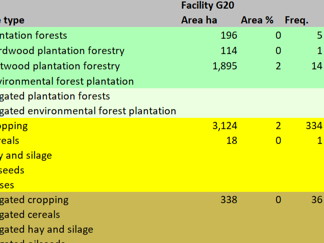 Data tables showing land use type, area, percentage and frequency can be generated for more detailed analysis.